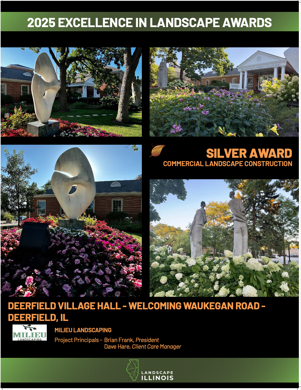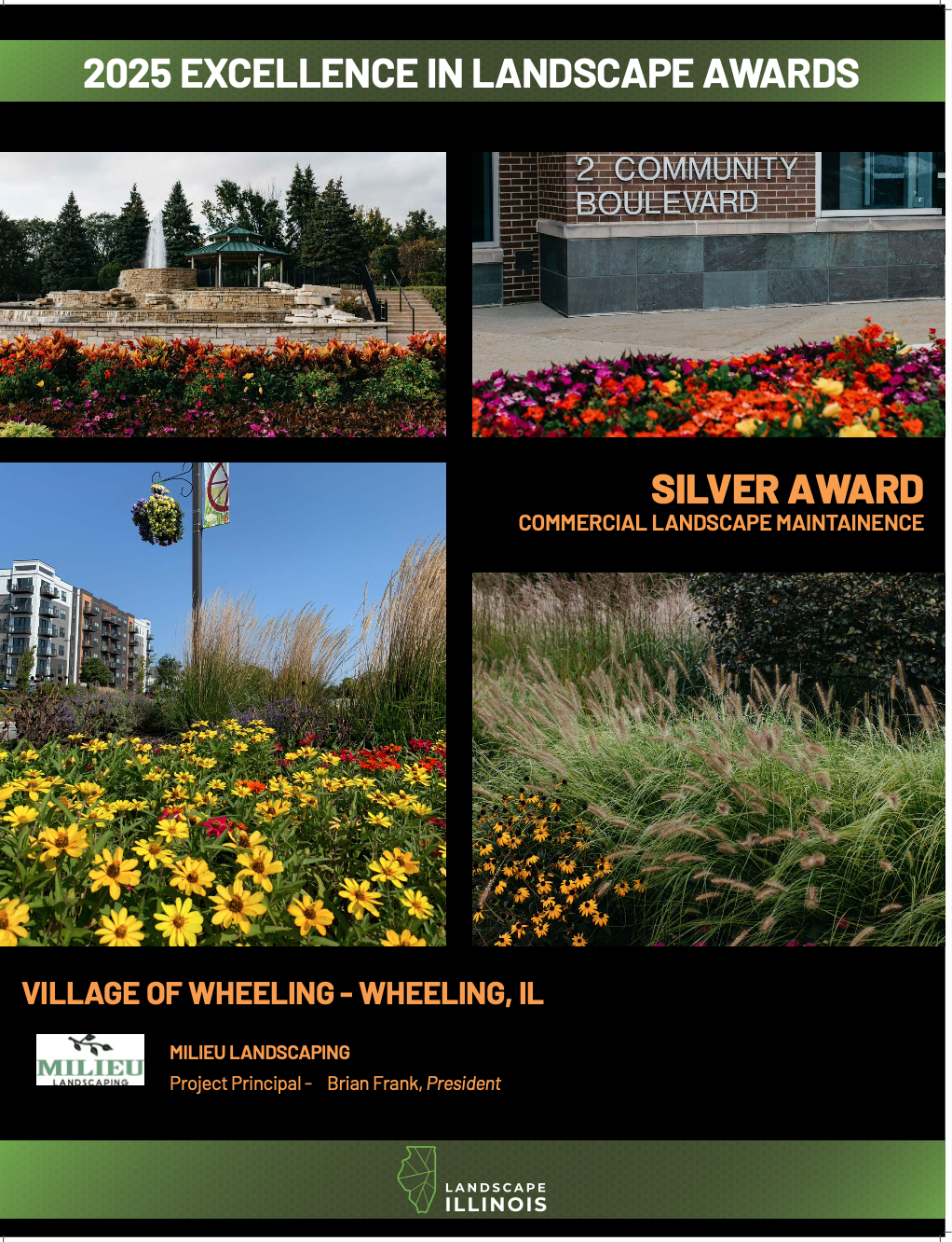 We are incredibly honored to have been selected as one of the award winners for this year’s Excellence in Landscape Awards at Landscape Illinois. It is with great joy and gratitude that Milieu celebrates Silver achievements in both Commercial Landscape Construction and Commercial Landscape Maintenance.