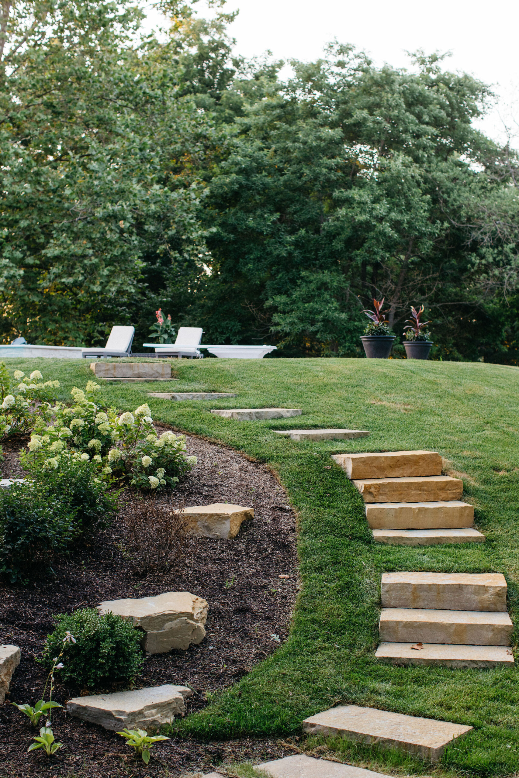 The project demonstrates an expert combination of hardscaping and softscaping to manage the property’s aesthetics and function. The defined garden beds and stone accents in the front yard clearly delineate the sophisticated planting areas from the expansive, well-maintained lawn. A custom stone pathway provides a graceful transition to the luxurious backyard pool and patio area. The precise placement of every element ensures long-term beauty and minimal maintenance, reflecting our dedication to functional, sophisticated landscape design. Ultimately, the result is a cohesive and elegant outdoor environment perfectly tailored for both grand entertaining and quiet enjoyment.