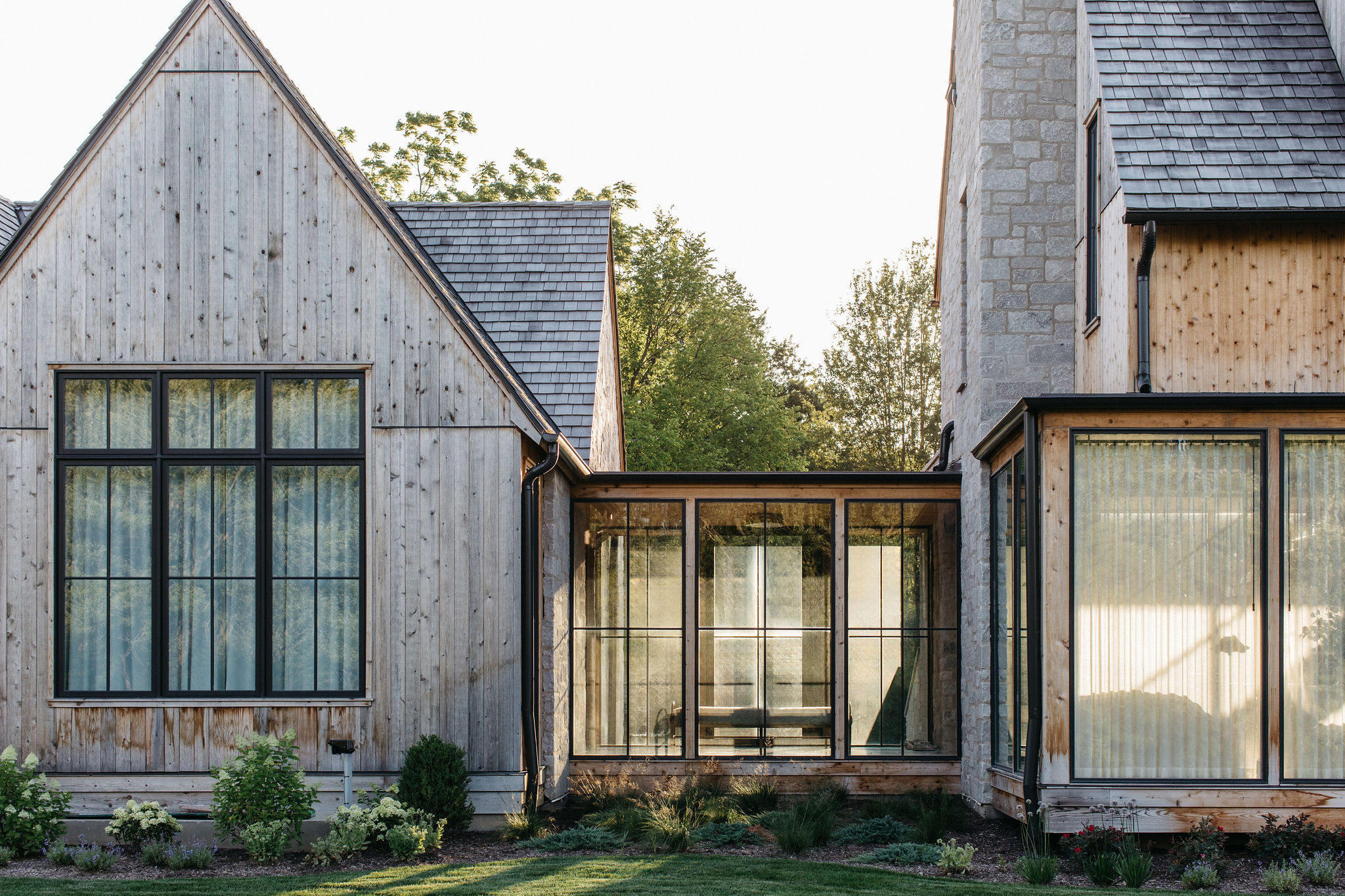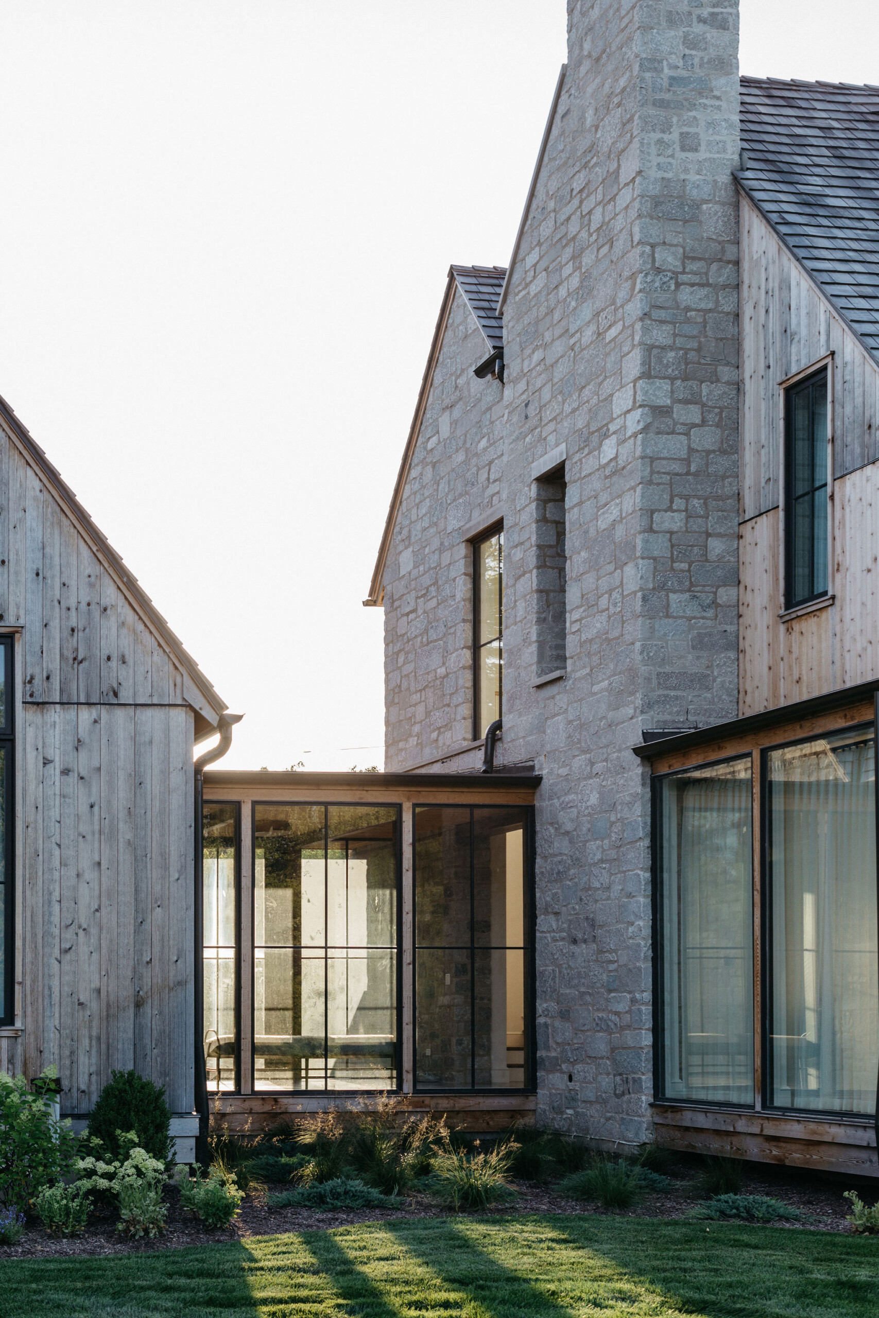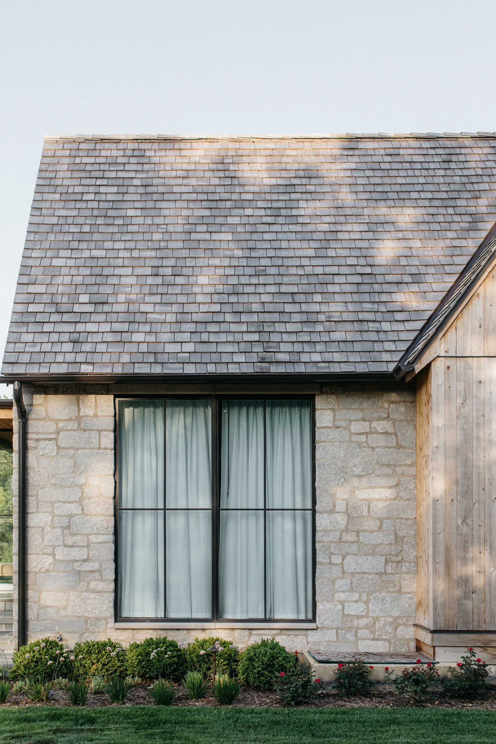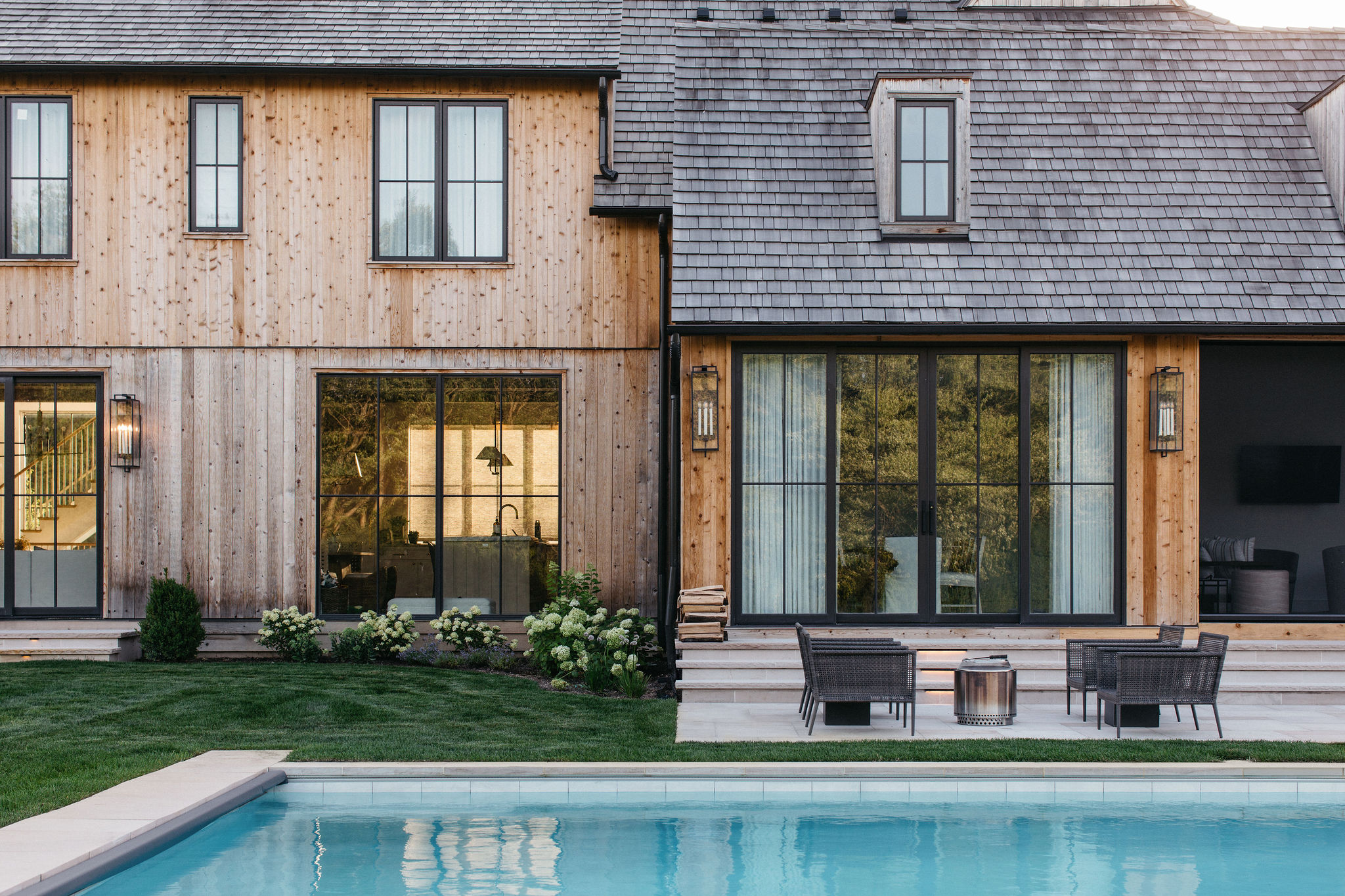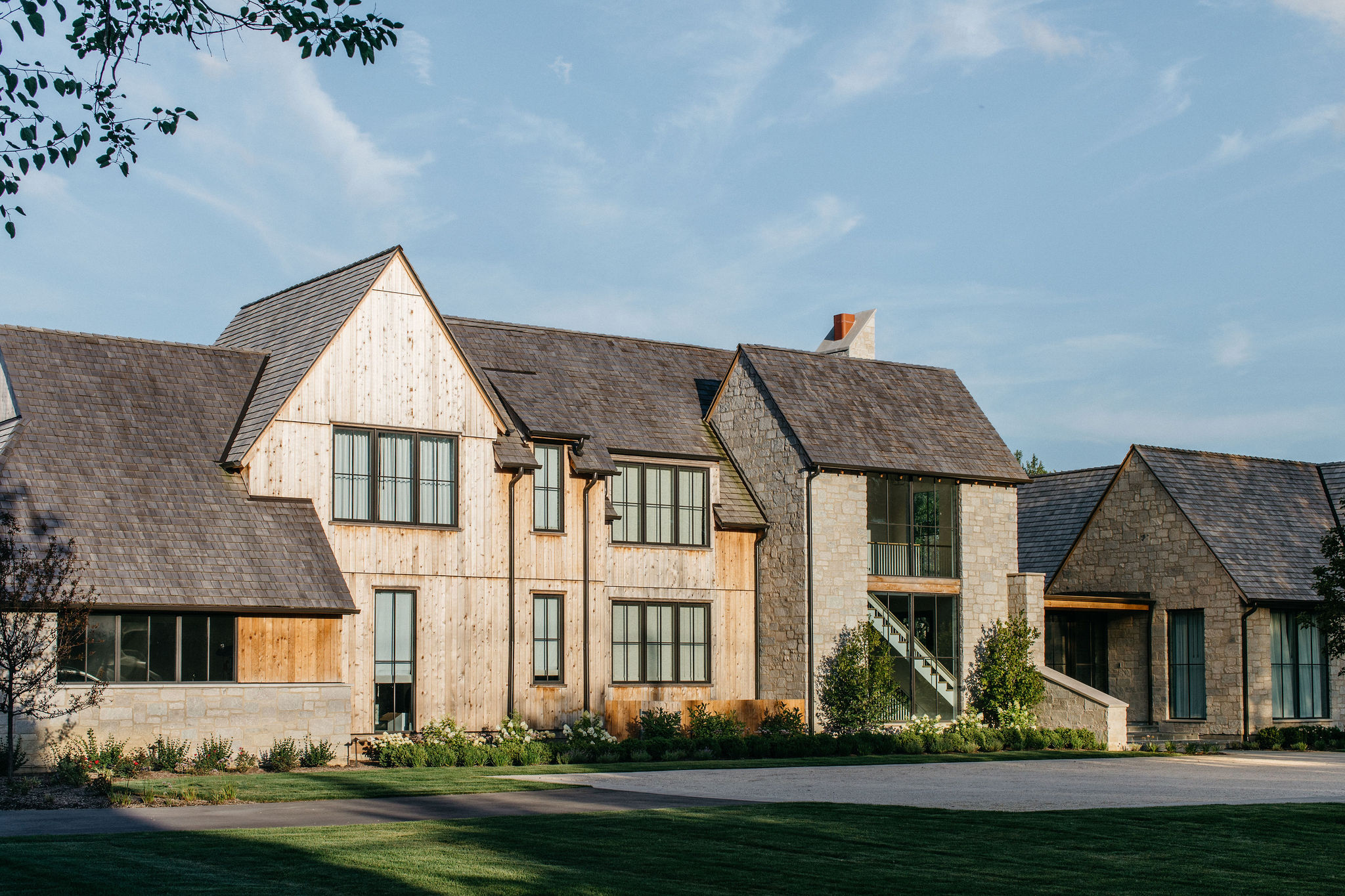 This elegant estate, beautifully enhanced by Milieu Landscaping, a trusted name across the North Shore and Northwest Suburbs, epitomizes modern outdoor luxury. The property features a striking swimming pool that serves as the backyard centerpiece, surrounded by an expansive, impeccably designed paver patio perfect for lounging and entertaining. Thoughtful landscape design integrates refined hardscaping with the home’s distinctive blend of natural stone and wood, creating a seamless transition from architecture to outdoor living. The lush, vibrant lawn areas are punctuated by unique stepping stone pathways, adding both visual interest and functional flow.