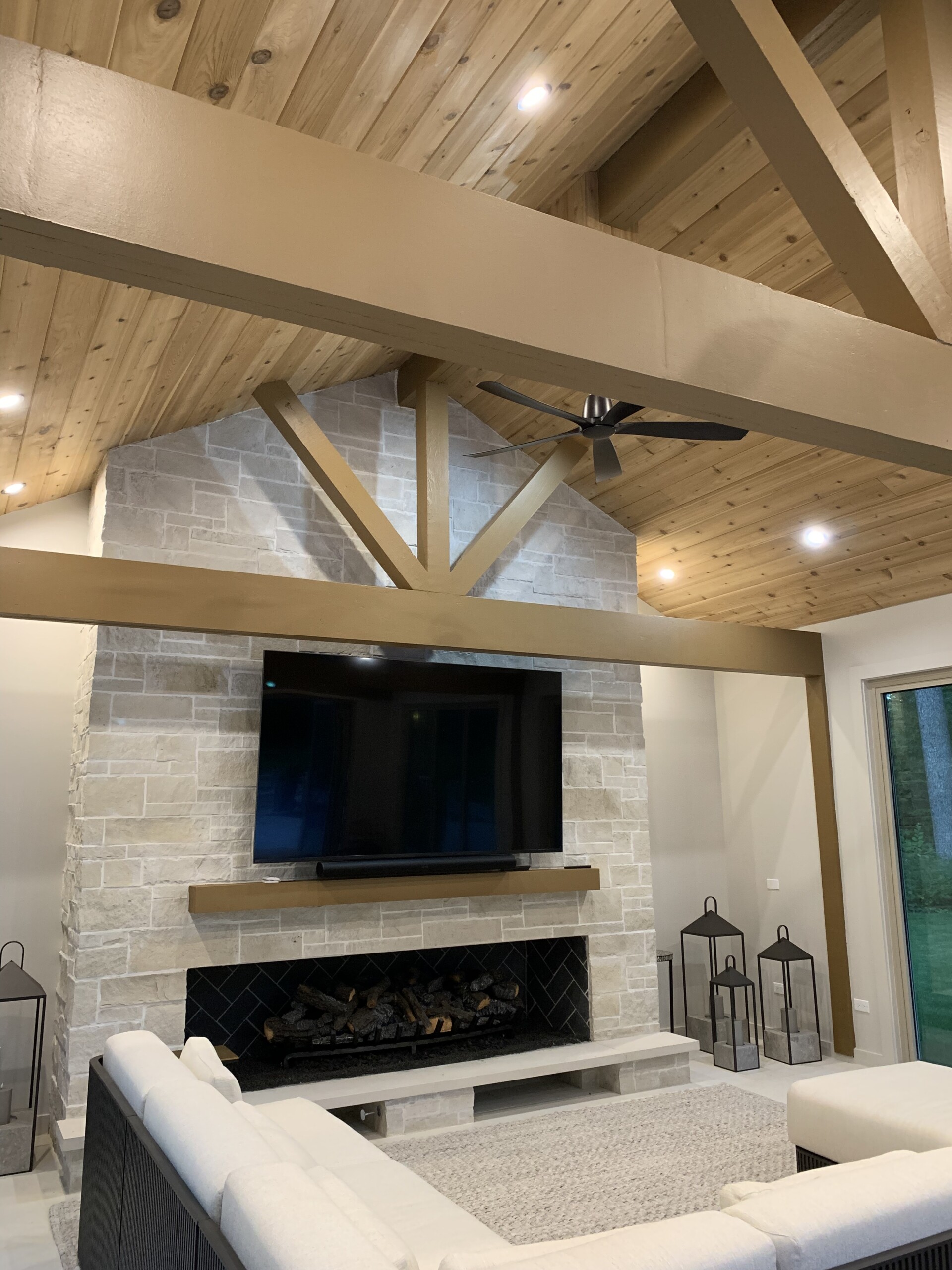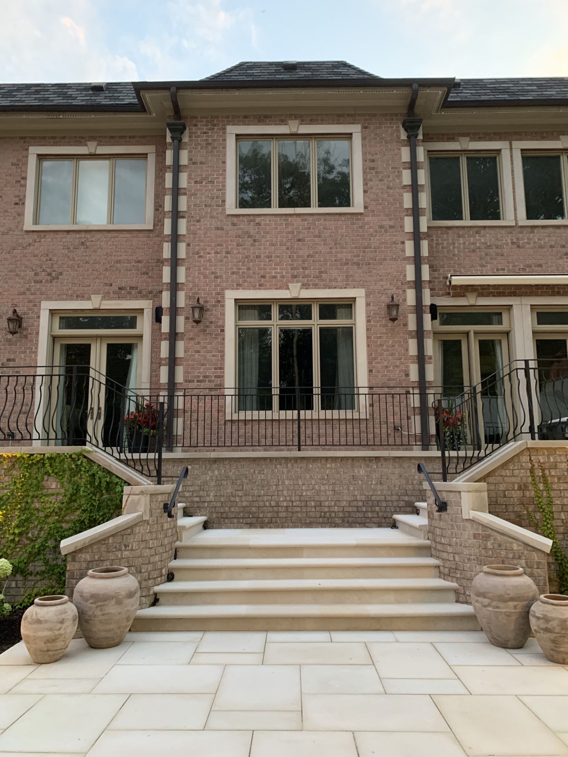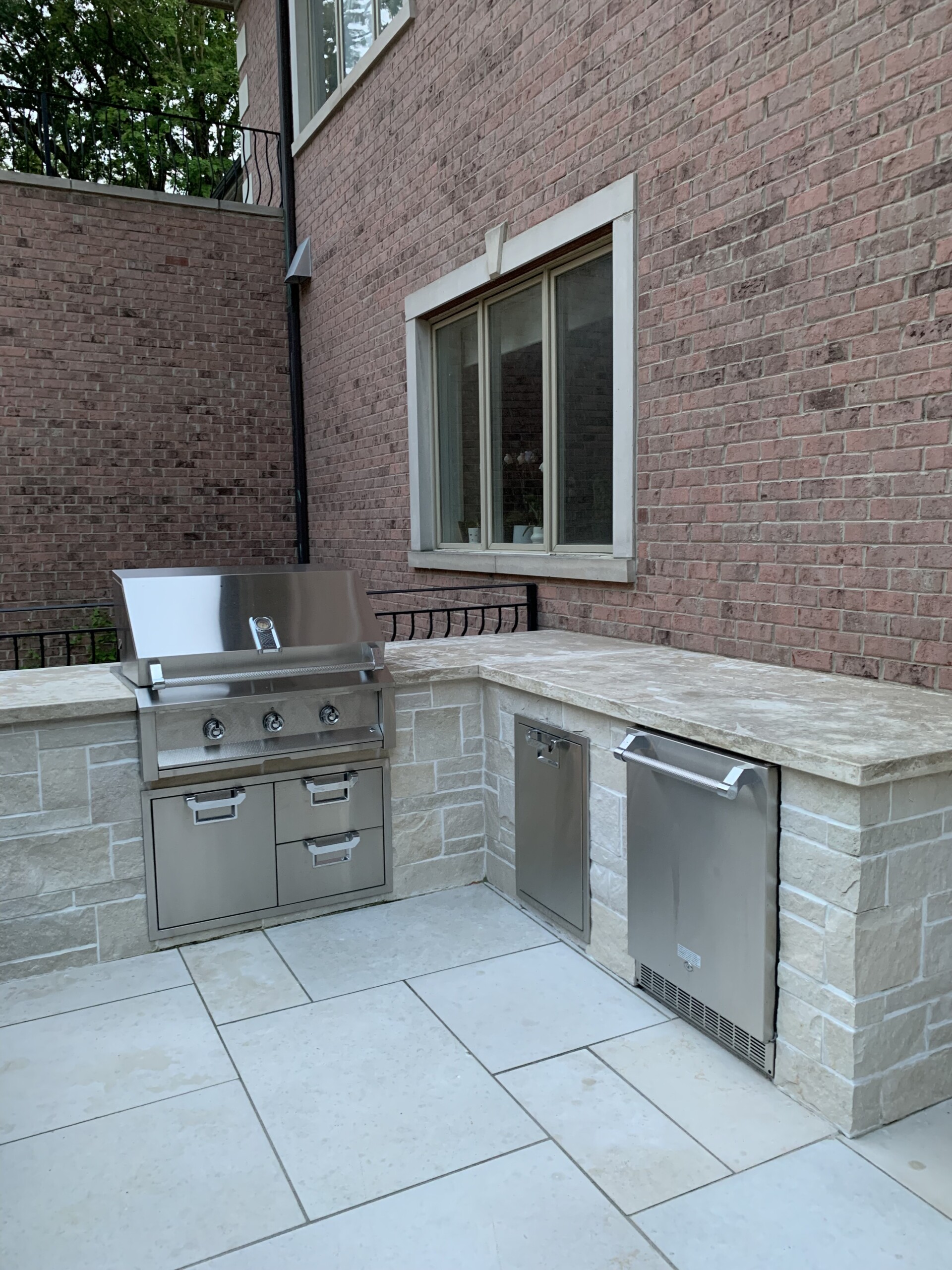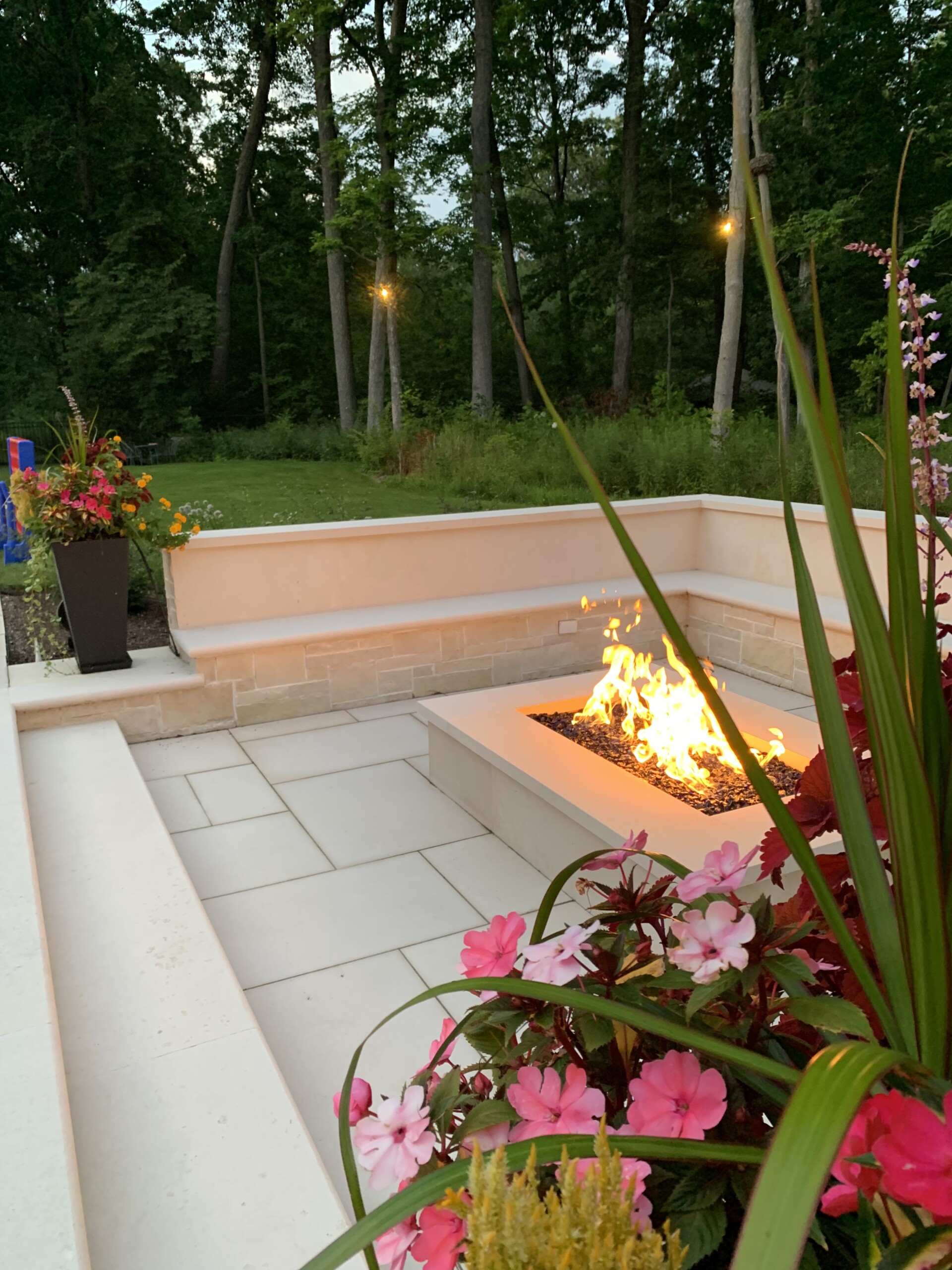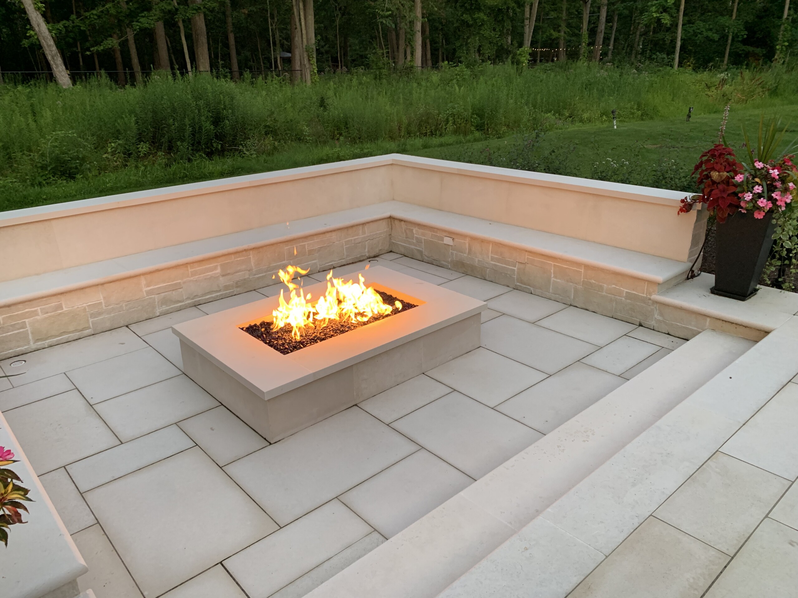 Precision was paramount in this build, featuring expert hardscaping that connects the main residence to the pool house. Our masons utilized Valders Dove White Sandblast flooring and Splitface stone for the fireplaces and the custom outdoor kitchen to ensure a timeless aesthetic. The wide-format pavers and tiered stone steps provide a grand sense of scale that complements the home’s architecture. These premium hardscaping elements provide the structural elegance required for a high-end, cohesive outdoor living environment.