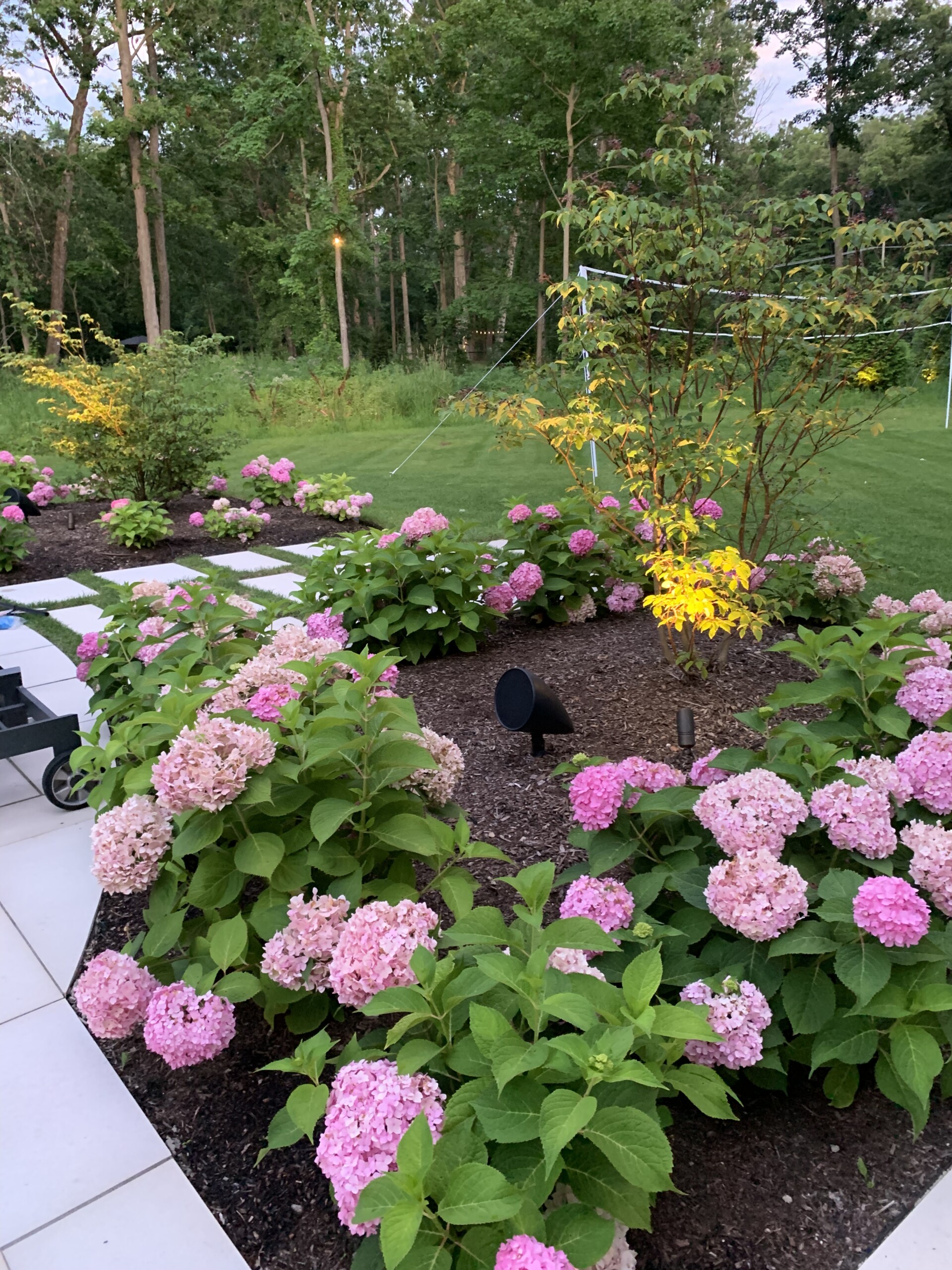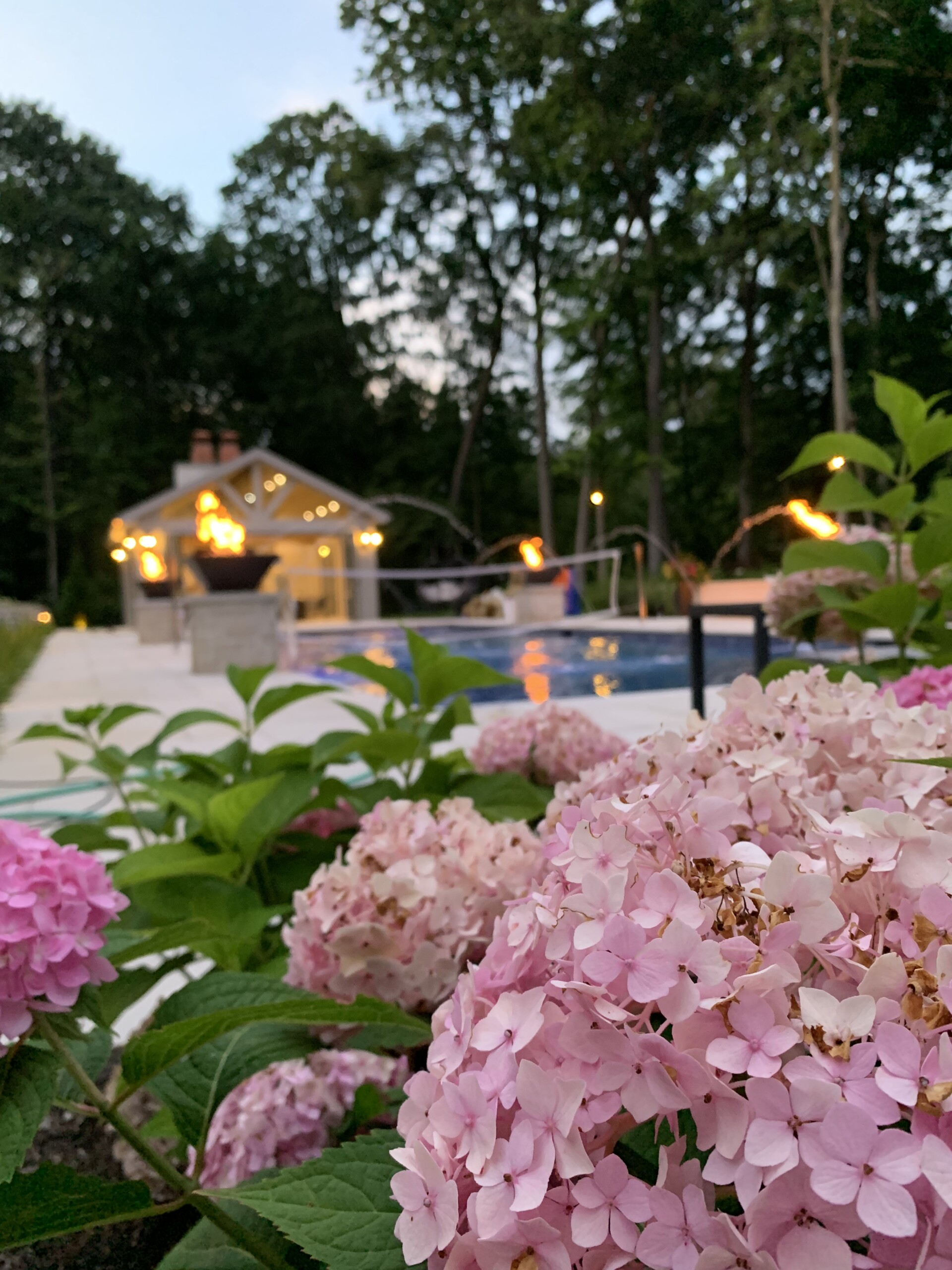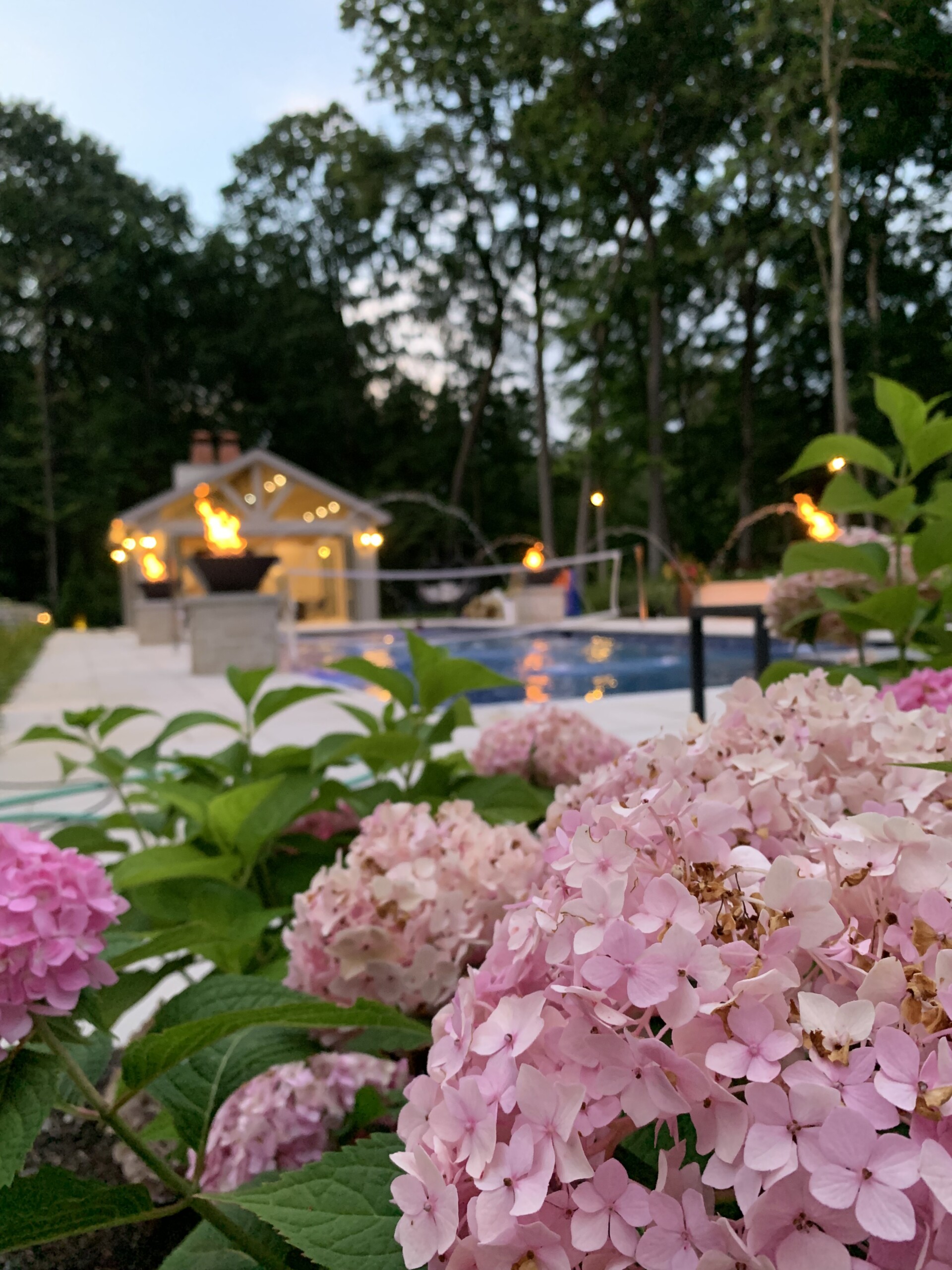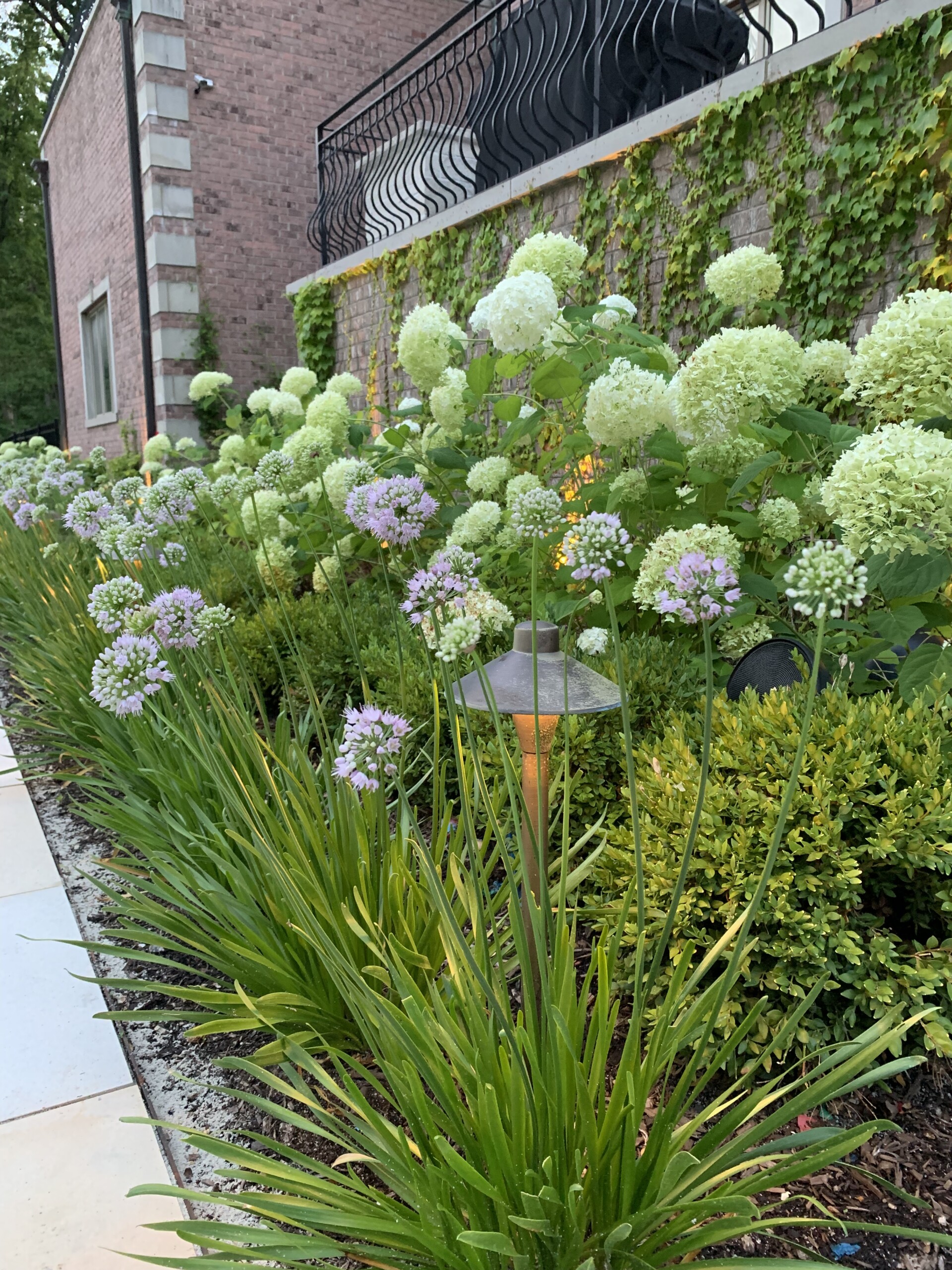 A great landscape design is only complete with the right finishing touches. We installed vibrant floral borders, oversized stone planters, and strategic LED lighting to highlight the home’s masonry and the texture of the white hydrangeas. This project also features a lush green lawn optimized for family activities like volleyball, proving that elite landscape design can be both beautiful and functional. Our comprehensive approach ensures your property looks just as magical under the moonlight as it does at noon.