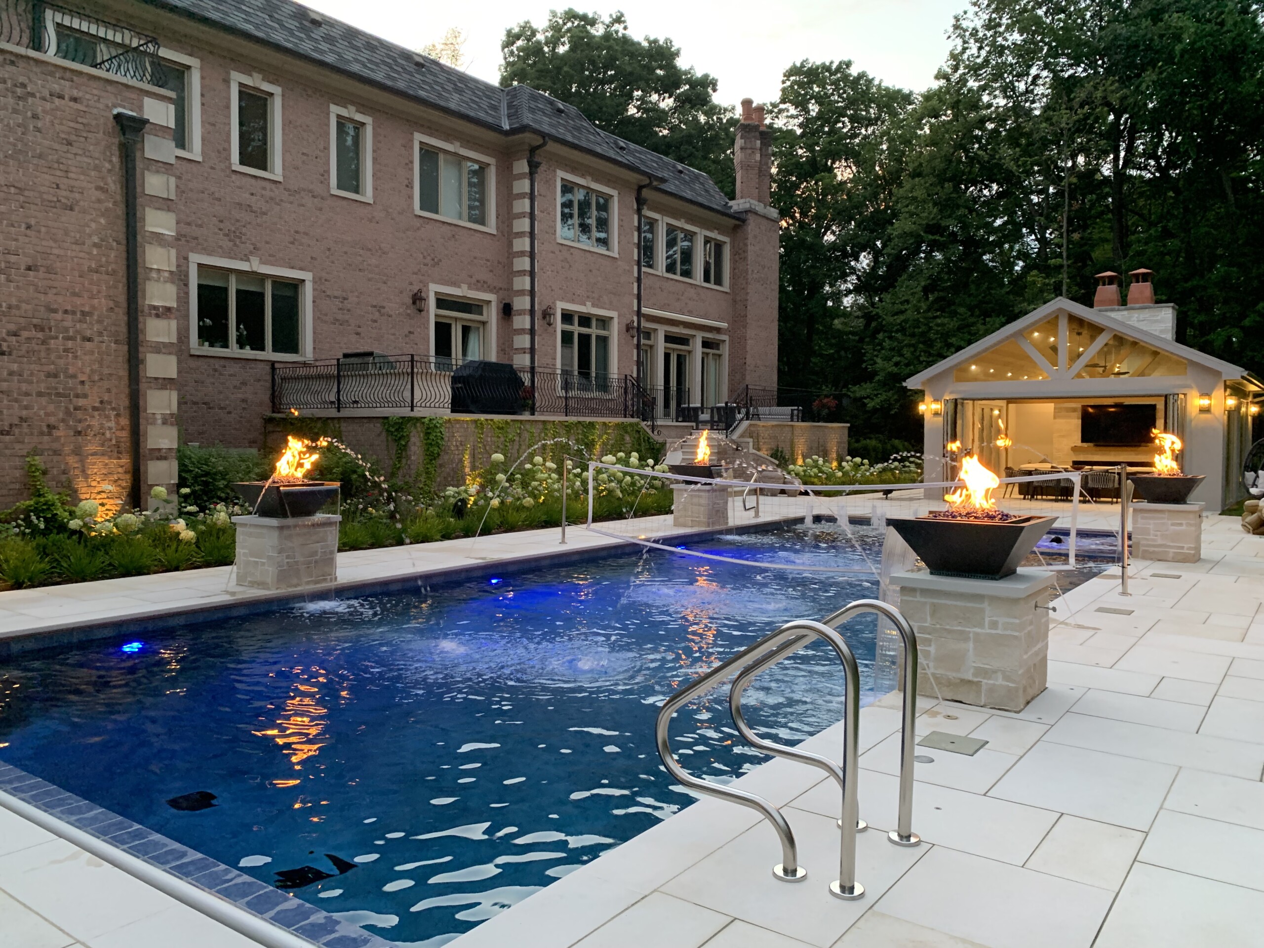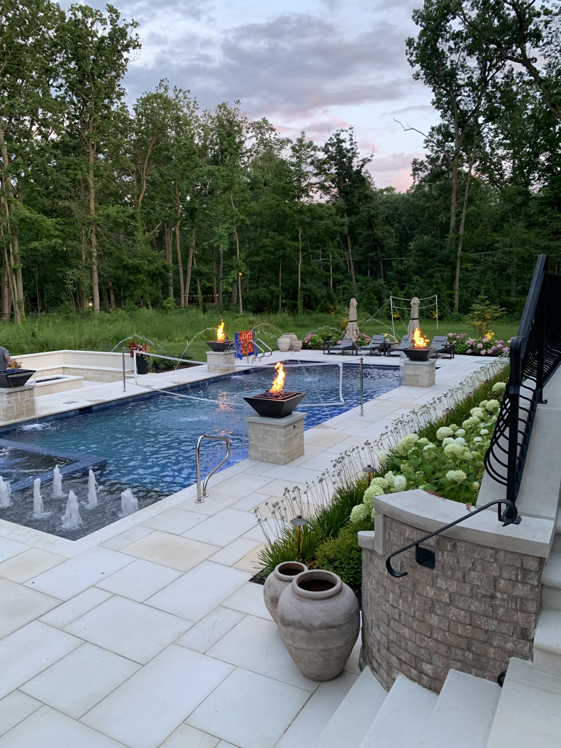 Our team reimagined this space by blending form and function to create the ultimate backyard design. By integrating a high-end swimming pool with custom fountains and fire-topped columns, we turned a blank canvas into a resort-style retreat. We prioritized open sightlines and fluid movement to ensure the pool remains the focal point of the property. Experience the difference of expert landscape services by scheduling your initial design consultation with our architects.