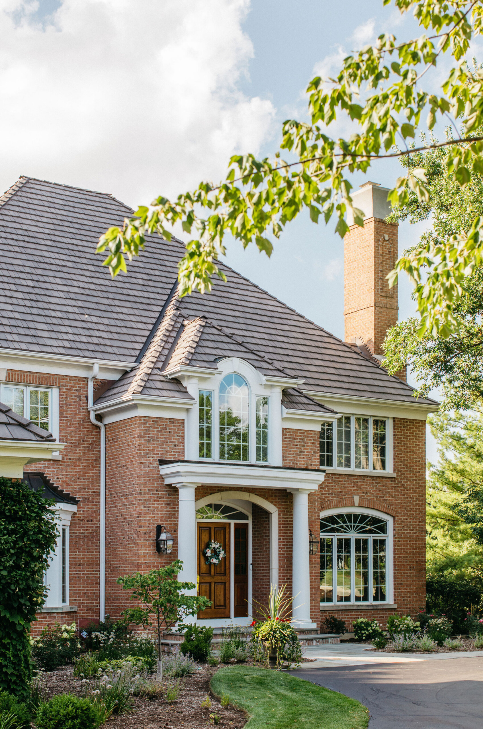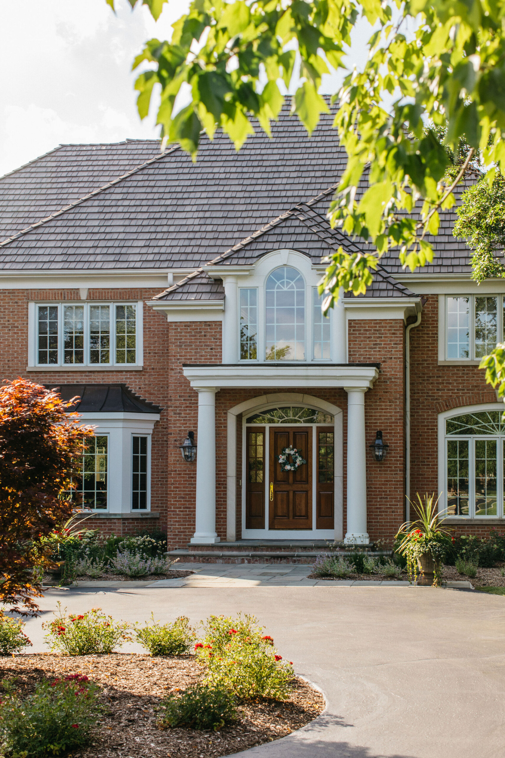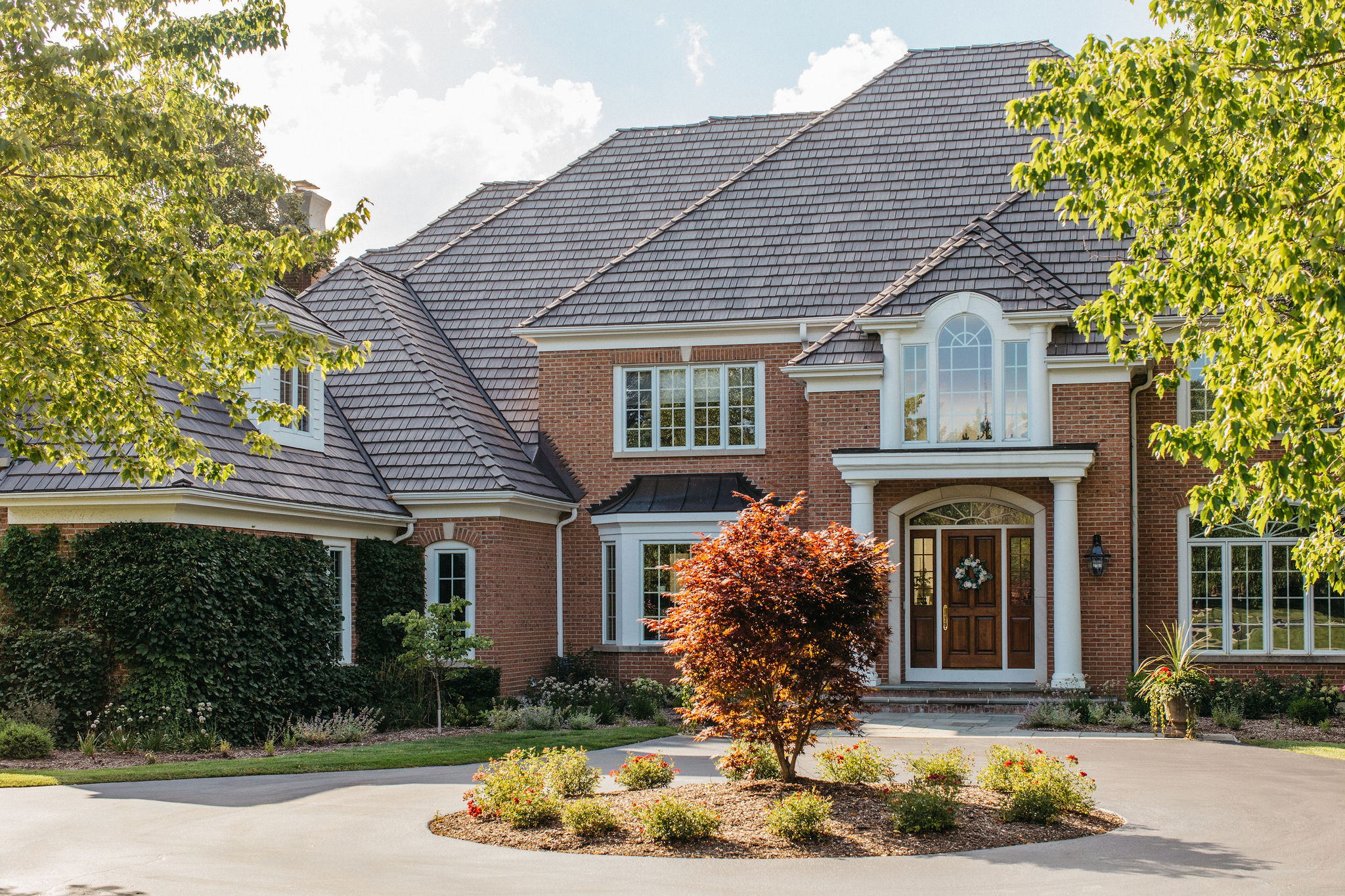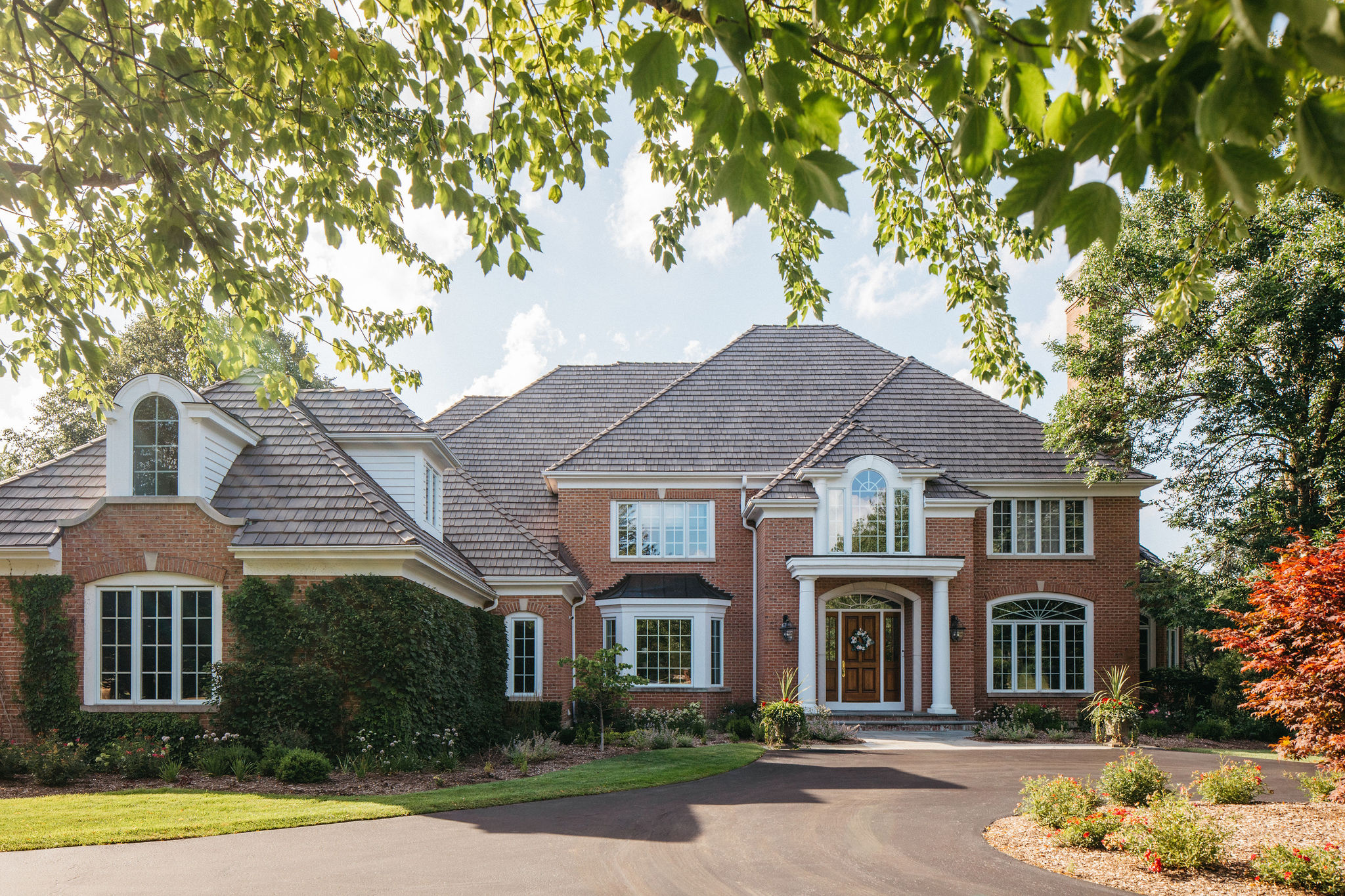 Beyond the newly defined gathering spaces, this landscape was designed for cohesive beauty and maximum functionality. Carefully chosen plantings within the garden beds and the unique driveway feature provide layered texture and vibrant color, substantially boosting the property’s curb appeal. Given the scale of the home, our work often involves ensuring proper grading and drainage to protect the foundation and the long-term health of the lawn. The result is a truly elevated outdoor environment that provides a welcoming first impression and a luxurious sanctuary for the homeowners to enjoy.