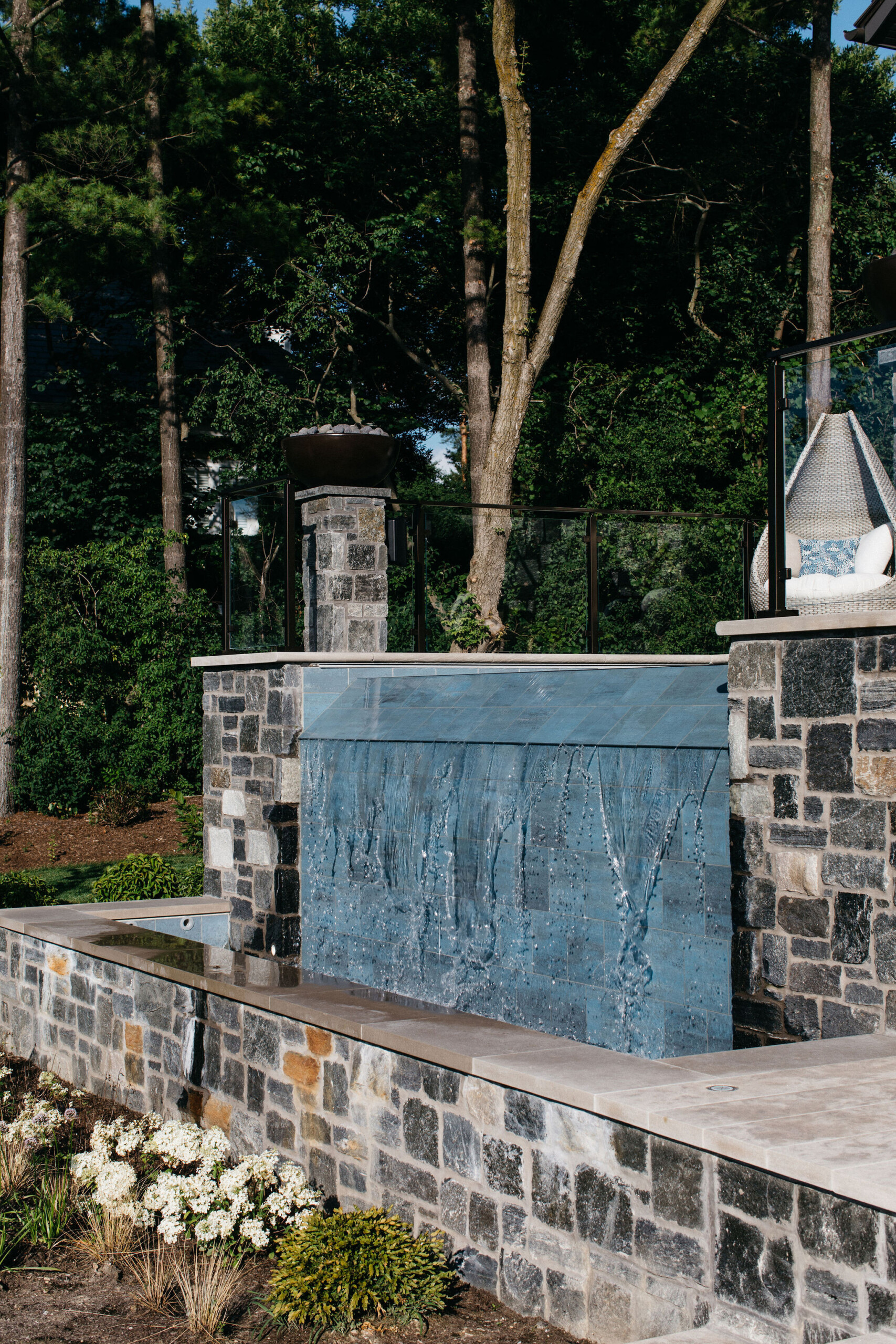 Beyond these captivating features, this landscape design emphasizes beauty in every detail. Vibrant seasonal flowers provide splashes of color and fragrance, complementing the carefully selected hardscaping. Our work ensures that every element, from the durable masonry to the lush plantings, integrates seamlessly to create a cohesive and luxurious environment. This project stands as a testament to creating functional beauty, providing homeowners with an exceptional space for entertaining, quiet contemplation, and enjoying the outdoors.